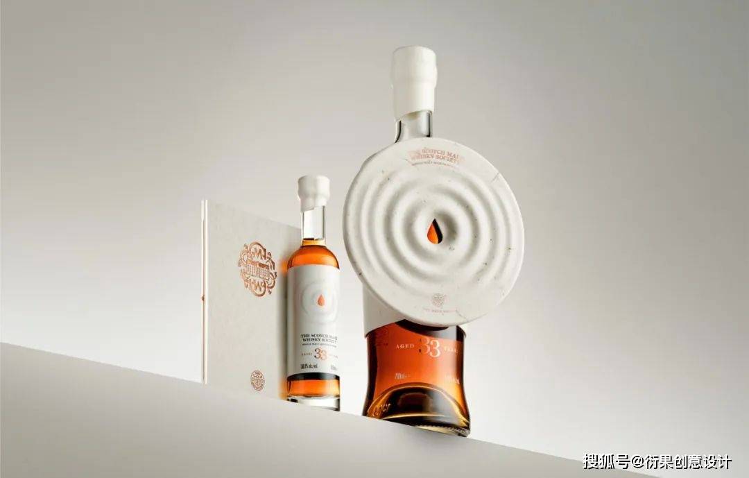 Chris Wilson为威士忌“The Only Drop”设计的包装,以一个手工制造的纸浆雕塑外壳来展示酒水激起的涟漪,同时,包装中用到了酿造这款酒的原始木桶的纸浆,将这款酒的历史融入到包装设计之中。